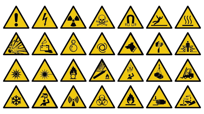 Die Warnung durch Warnzeichen soll die Aufmerksamkeit der Personen erhöhen, indem sie mit der Gefahr visuell konfrontiert werden. Sie sind dreieckig und haben eine gelbe Farbe mit schwarzer Schrift. Bekannte Warnzeichen sind zum Beispiel das allgemeine Warnzeichen mit einem großen Ausrufezeichen in schwarzer Signalfarbe oder die Warnung vor elektrischer Spannung, die mit einem schwarzen Blitz gekennzeichnet ist. Eingesetzt werden die Symbole im gewerblichen Bereich als Ausschilderung oder auf Produkten als Aufkleber.