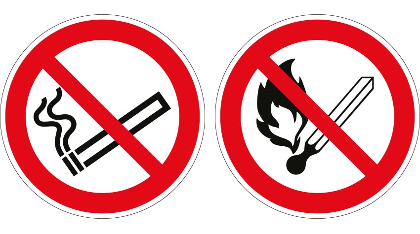 Die Verbotszeichen untersagen eine bestimmte Handlung. Das kann beispielsweise die Nutzung bestimmter Gegenstände sein oder das Rauchen in einem Areal oder Gebäude. Ihr Einsatzgebiet ist breit gefächert. Das Verbotsschild für Rauchen habt ihr vielleicht schon an einer Tankstelle gesehen oder das Verbot für Hunde in einem Restaurant. Das Verbotszeichen ist rund und hat einen weißen Hintergrund. In schwarzer Signalfarbe ist das entsprechende Verbot als Piktogramm dargestellt. Eine rote Umrandung sowie ein Querstrich kennzeichnen das Unterlassen der jeweiligen Handlung. Auch hierbei lassen sich viele Unfälle vermeiden, indem man im Vorhinein gefährliche Gegenstände oder Handlungen ausschließt.