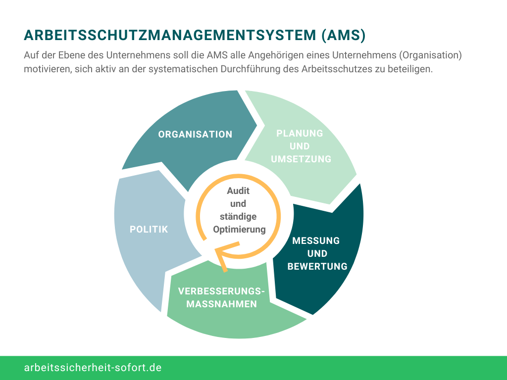 Ein AMS ist ein Managementsystem, das dazu dient, Gefahren am Arbeitsplatz zu ermitteln, um diese im Anschluss beseitigen zu können. Es greift also ein, bevor es zu Krankheiten oder Unfällen bei Beschäftigten kommt. Damit bieten euch AMS die Möglichkeit, das Sicherheits- und Gesundheitsrisiko in eurem Betrieb ständig im Blick zu haben und Zwischenfälle zu verringern. Falls es doch einmal zu einem Zwischenfall kommen sollte, können unverzüglich Maßnahmen eingeleitet werden. Im Idealfall wird durch das AMS die gesamte Arbeitsschutzorganisation des Unternehmens abgedeckt.