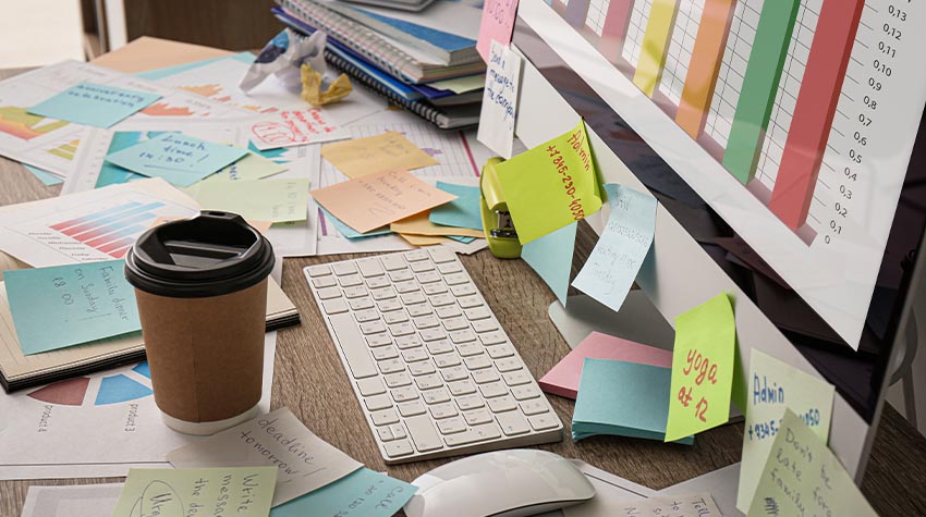 Bei versteckten Aufgaben handelt es sich um Zeiträuber wie beispielsweise das Suchen nach Dokumenten, unnötigen Meetings oder technischen Problemen. Vielleicht ist euch selbst schon einmal aufgefallen, dass ihr in einem stundenlangen E-Mail Verkehr festhängt, der auch in einem kurzen Telefonat erledigt werden könnte. Um diese Arbeit rund um die eigentliche Tätigkeit zu minimieren, solltet ihr eure Tools und Arbeitsprozesse optimieren. Dabei findet ihr meistens viele unnötige Prozesse, die gestrichen oder zusammengeführt werden könnten. Oder ihr sucht nach einer Möglichkeit, Routineaufgaben zu automatisieren.