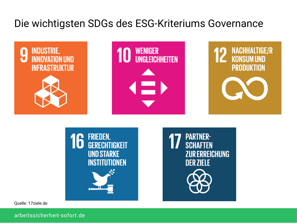 Mit der Agenda 2030 wurden 17 Ziele, die sogenannten Sustainable Development Goals (SDGs), für die Weltgemeinschaft gesetzt. Diese sollen zu einer sozial, wirtschaftlich und ökologisch nachhaltigeren Entwicklung beitragen. Die für den Aspekt Governance relevanten Ziele sind Folgende: